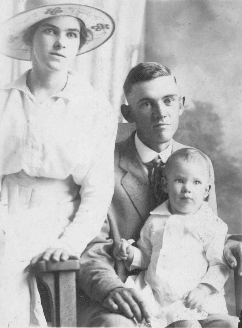 Samuel Sherley Gregory and Vera Mae Gregory circa 1918 with their first born child (son) E.G. Gregory.
