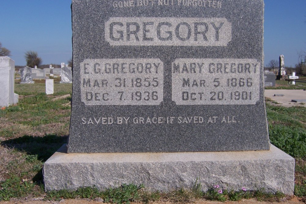 GREGORY Geneology - Elija G. and Mary Gregory - Tombstone