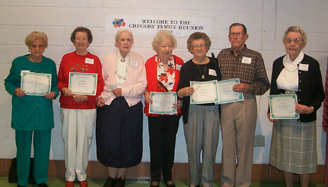 A group picture of the oldest attendees displaying their certificates