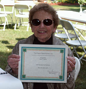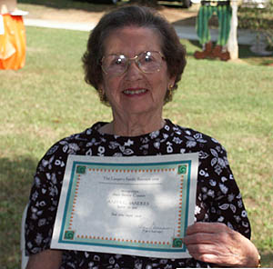 Gene Ann Creecy presents her certificate for traveling the farthest