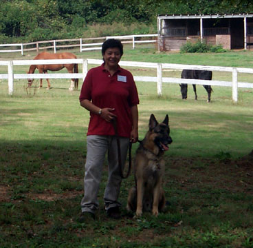 Dominique Gregory with her dog Galan